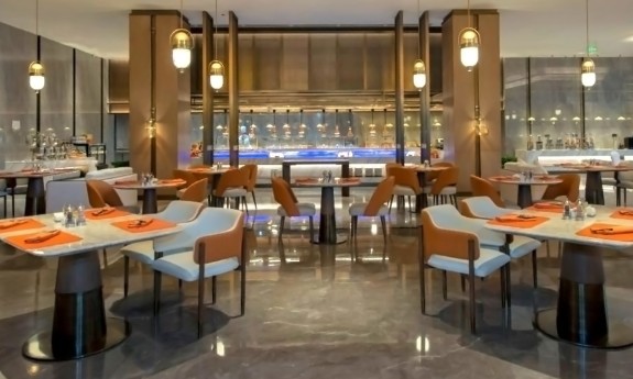 中西美食,名酒佳肴,南北美点,珍馐百味。华贵而又不失幽雅的环境,顶级的服务,集中体现了开元名都的饮食文化。酒店设有多个餐饮区域:盛鉴大堂吧、桐汭印象包厢群、极宴荟全日制风味餐厅、开元宴会厅等。